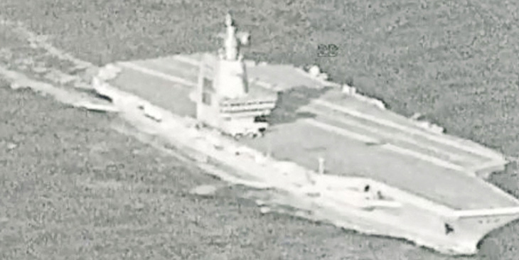 【明報專訊】解放軍首艘電磁彈射型航母福建艦上月7日服役後,前天據報途徑台灣海峽北上。台軍方昨(17日)披露空拍照片,顯示福建艦的甲板上並未搭載軍機。
