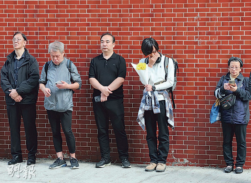 【明報專訊】宏福苑大火救援期間殉職的消防員何偉豪昨日舉殯,載着靈柩的消防車由紅磡世界殯儀館,途徑宏福苑及其駐守的沙田消防局,再到浩園安葬。不少市民特意前往靈車途經地點向何偉豪告別,殯儀館外昨晨亦設公眾悼念區,到場獻花的吳先生感謝何的付出,讚他「好叻、好英勇」。