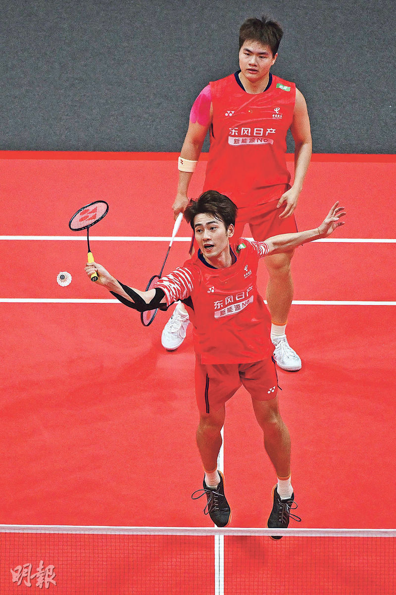 羽毛球年終賽4強名單全部出爐,國家隊男雙組合梁偉鏗/王昶此前小組賽1勝1負,昨對陣印尼隊好手艾菲安/穆罕默德菲克里首局落後13:16時連轟7分,以21:17先聲奪人;次局再贏21:14,以局數2:0強勢奠勝,成功把握最後出線機會。