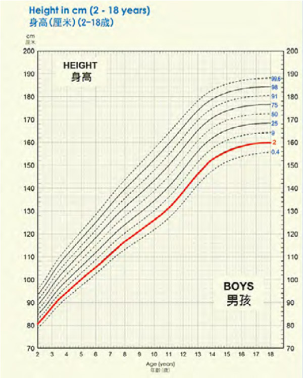 醫學上,當兒童身高低於同年齡同性別同種族的兩個標準差,例如根據香港2020年生長圖表的第2百分位數或以下(見圖紅色線),便可定義為矮小。這不止是一個簡單數字,更可能反映孩子身體健康或發育上潛在的問題。