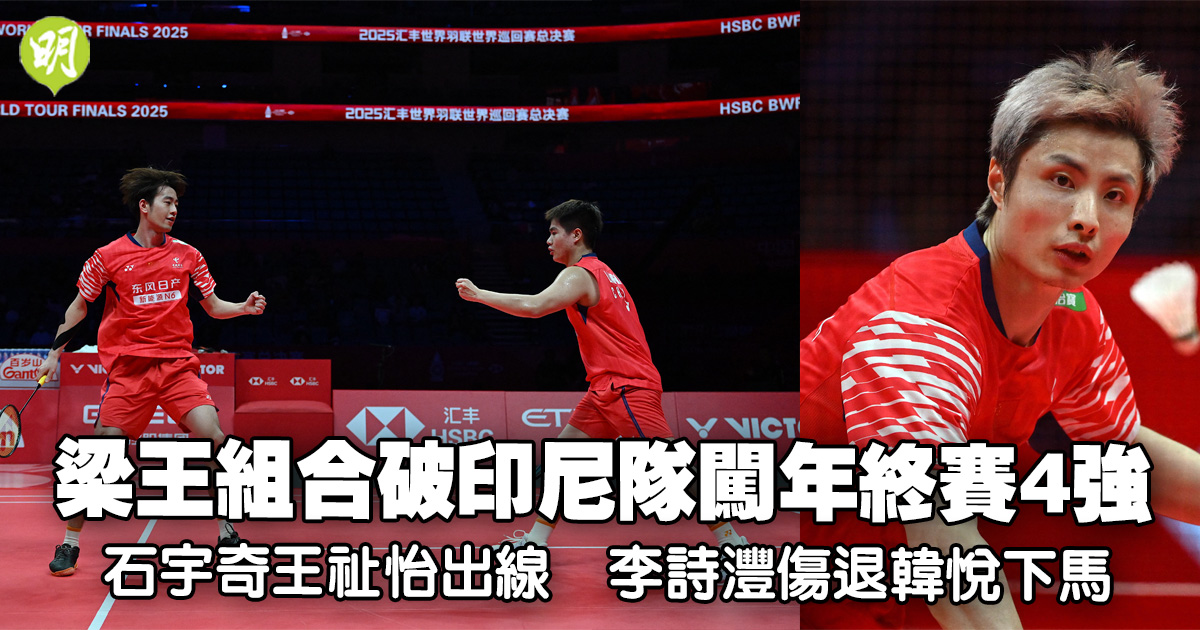 羽毛球|梁王組合破印尼隊闖年終賽4強 石宇奇王祉怡出線 李詩灃傷退韓悅下馬 (22:23)