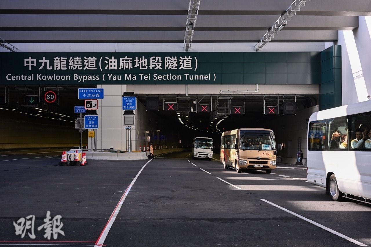 陳美寶於通車前到中九龍繞道油麻地段行政大樓視察情况。通車後,由城巴領頭,不少的士、私家車亦緊隨其後使用新繞道,沿路亦有交通警觀察道路狀况,行車大致暢順。