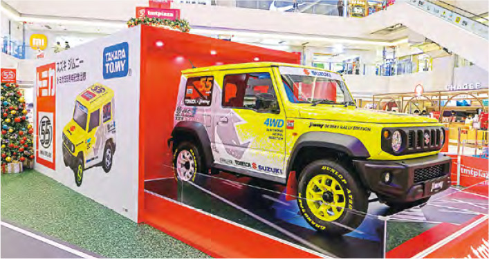 【明報專訊】聖誕將至,適逢玩具車品牌TOMICA踏入55周年,特別與屯門市廣場聯乘主題展覽。活動期間,屯門市廣場中央廣場化身成大型玩具車世界,而全場最矚目的必定是高6米、由經典紅白車盒堆疊而成的聖誕樹,加上巨大化經典玩具車盒打卡牆,粉絲恍如走進了放大版的玩具世界。同場更展出TOMICA與SUZUKI破格聯乘的JIMNY 55周年特別版真車,絕對是車迷必到的打卡點。