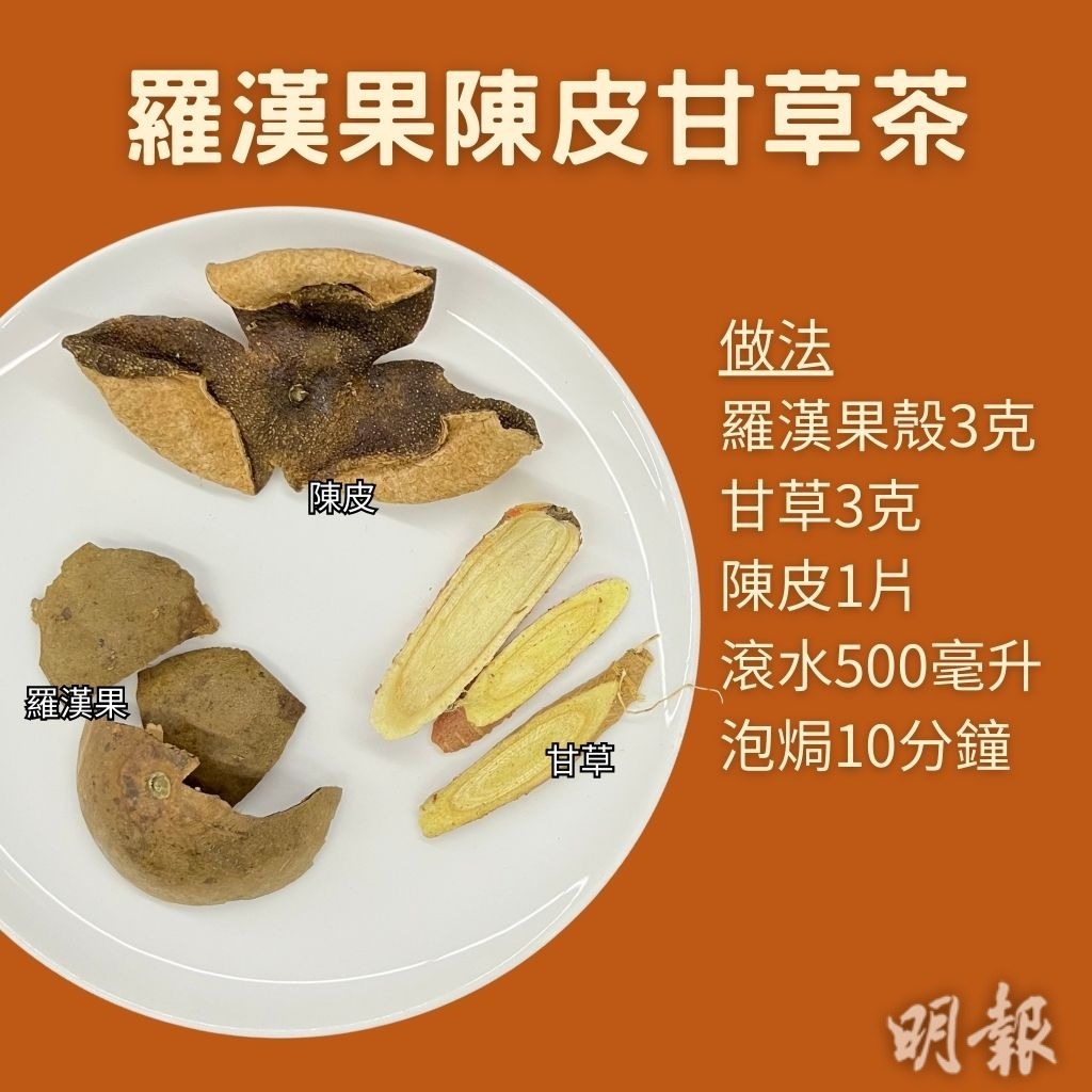 材料:羅漢果殼3克、甘草3克、陳皮1片、滾水500毫升