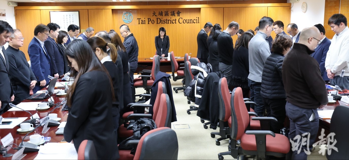 大埔區議會今舉行本年首次會議,議程包括宏福苑火災善後及支援工作安排 ,會議在全場默哀後開始。多名區議員關注重建方案,促政府提供多項選擇,有區議員提議原區覓地建樓,並指頌雅路西有一公屋熟地,可加快重建、也有區議員問及廣福公園寵物公園能否用作重建。規劃署代表指,當局正統籌方案,知道居民希望有選擇,會詳細考慮,適時公布。