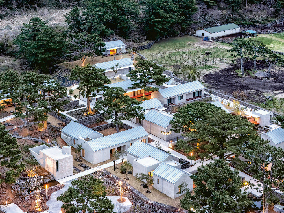 【明報專訊】近10年來,韓國出現了為數不少由明星建築師設計、外形誇張的地標建築,例如首爾的東大門設計廣場、釜山電影殿堂等,統統成為了韓國城市景觀的代名詞。另一邊廂,韓國國內的一些建築師一直批判這種建築設計脫離地方文化的現象,並致力創造出回應地景的建築。最近在濟州島涯月邑落成、由承孝相及其創立的「履露齋建築師事務所」所設計的度假村「涯月閑居」(Aewolhangeo),就是當中的好例子。
