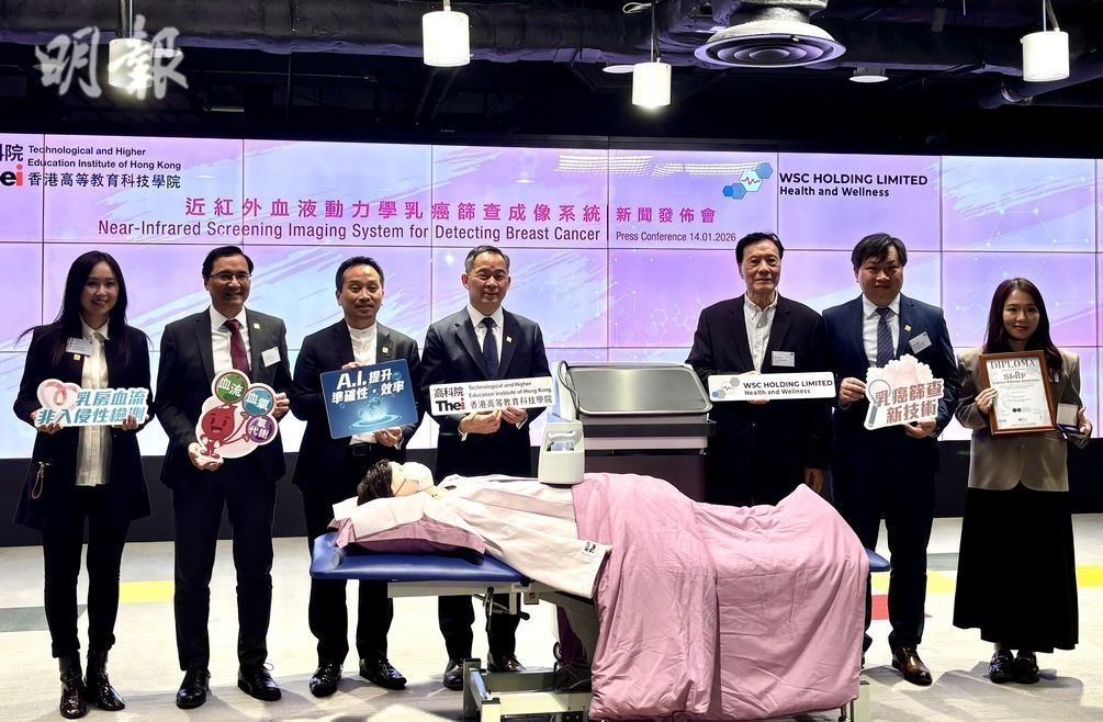 乳癌是本港女性最常見癌症之一,亦是本港女性第三位致命的癌症,僅次於肺癌和大腸癌。香港高等教育科技學院(THEi)與本地及內地研究團隊合作,研發出「近紅外血液動力學乳癌篩查成像系統」,透過評估女性乳房組織的血流量等異常情况,幫助女性篩查乳癌,第一期準確率達86.5%。團隊估計,該技術檢測一次僅需100元,15分鐘便能獲得結果,冀未來推廣至社區應用。