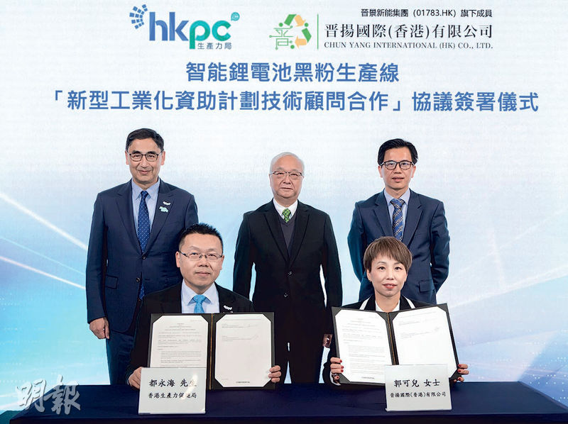 【明報專訊】電動車保有量愈來愈大,逐漸形成一個龐大退役動力鋰電池回收再造市場。晋揚國際(香港)日前宣布,將會在港建設一條自動化鋰電池黑粉生產線,預料今年上半年落成和運作。