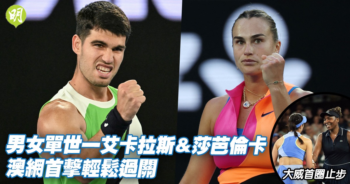 網球︱男女單世一艾卡拉斯莎芭倫卡澳網首擊輕鬆過關 大威首圈止步 (20:19)