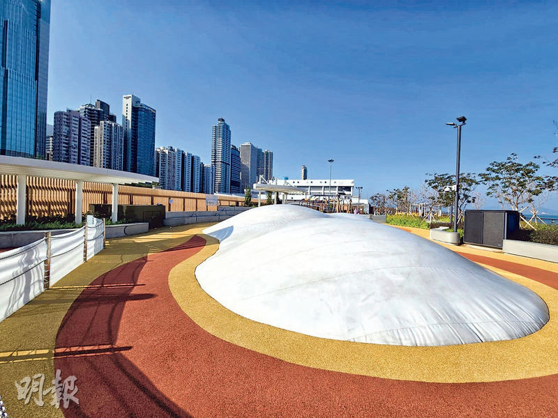 【明報專訊】去年底剛開放的西營盤海濱公園,其遊樂設施照片在網上一出,立即成為親子界熱門話題!那裏的每項設施都是非一般遊樂場可見,如全港首個戶外雲朵造型彈牀「片片雲海」,小朋友可在儼如白雲的彈牀上盡情跳躍;搖擺韆鞦是一條彎彎曲曲的粗大麻繩,能同時容納4個人一邊盪韆鞦,一邊氹氹轉;日落滑梯更是連接觀景平台,大小朋友都可從平台直接滑下地面,好玩又刺激。