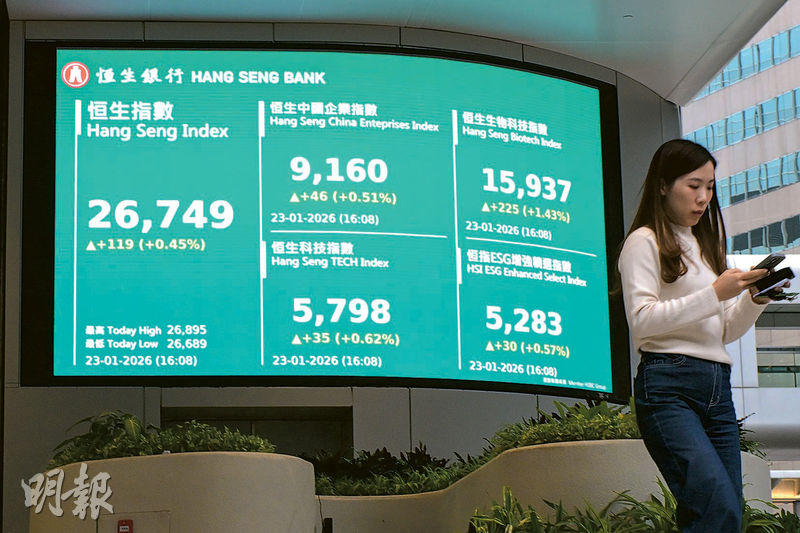 恒生指數昨早高開232點,早段高見26,861點後掉頭回落,最低曾見26,689點,午後隨外圍做好,收市報26,749點,升119點或0.45%,升穿10天線(現處26,724點)。但是88隻藍籌股只有48隻報升,反映市場繼續炒股不炒市。國企指數升46點或0.51%,收市報9160點,科技股指數升35點或0.62%,收市報5798點。大市成交額2408億元。全周計,恒生指數累跌0.36%,國企指數及科技股指數分別累跌0.65%及0.41%。
