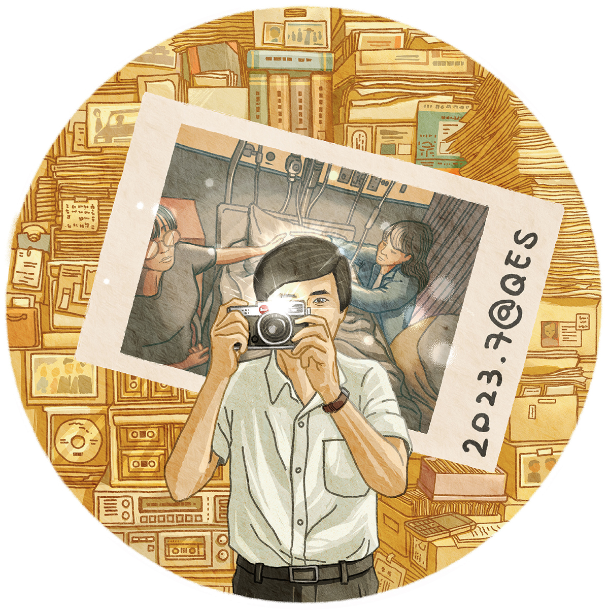 大福銀包夾着一張即影即有相片,照片記錄父親在醫院病牀離世後,父親躺在病牀上,一家人圍着父親告別的畫面,父親的面容剛好被閃光燈的光暈遮蓋。大福形容做法「幾癲」,但這是他哀悼的過程,希望記錄這一刻。
