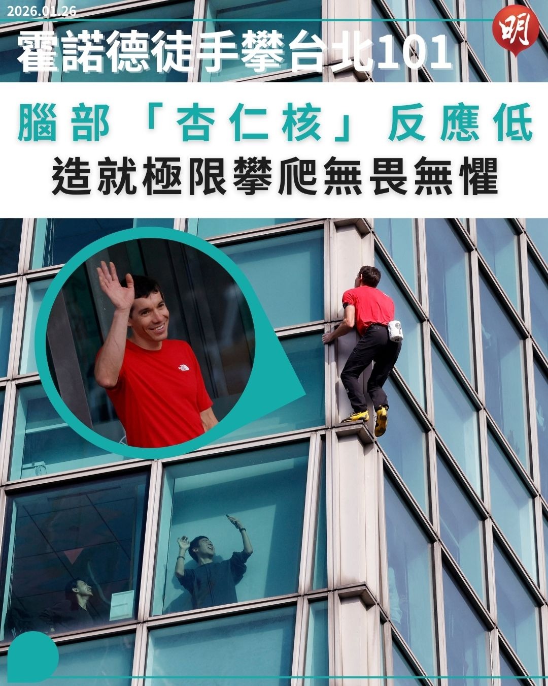 《Newsweek》報道,2016年曾有科學家對霍諾德的腦部進行掃描,結果發現他腦中負責偵測潛在威脅、觸發情緒反應與壓力的「杏仁核」(Amygdala),在面對刺激時的反應程度低於另一名男性攀岩者。科學家表示,這可能源於霍諾德「前額葉皮質」的調節能力特別強大,能有效壓制恐懼訊號。(Newsweek/GQ/聯合合新聞網)