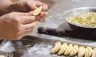 餡料同樣講究。花生、芝麻與椰絲必須先烘香,這步驟可使芝麻辟去草青味,椰絲更脆更香,然後再與砂糖拌勻便成為傳統角仔餡料。包角仔時,梁師傅先用模具切割出一張張細小圓形的麵皮,用拇指輕壓麵皮中央,然後填餡、包緊、摺花,只需10多秒便能完成一隻角仔,動作如行雲流水,且每隻包出來大小相若飽滿,花邊挺身漂亮,盡顯40多年的功架。