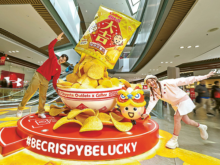 【明報專訊】今個新春,東薈城名店倉首次聯乘港人至愛的日本零食品牌Calbee,打造充滿歡笑與「脆」味的「『薯』來運到」新春主題活動!四大Calbee成員Jagabee Potta、薯片Pote Kun、蝦條河童蝦家族和Jagarico長頸鹿,將換上賀年服飾,在8大新春「脆」味打卡位登場,喜迎春節。當中包括地下3.8米高的巨型薯片袋裝置,傾瀉而下的金黃薯片裝滿大碗,寓意新一年「『薯』滿缽滿」;走上2樓中庭廣場更有以巨型棋盤為靈感的「奇『脆』樂園」,讓人彷彿走進了巨人國的零食世界。場內更設有「『薯』藝比併」數碼遊戲及「鮮蝦釣釣樂」互動遊戲,小朋友完成挑戰即可換取限定版薯片夾盲盒,好玩又有紀念品帶回家。