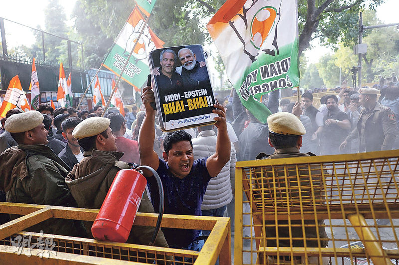 【明報專訊】美國司法部上周公開新一批淫媒愛潑斯坦案的文件,當中顯示愛潑斯坦在2017年一封電郵中,提到印度總理莫迪訪問以色列一事,稱「莫迪聽從了建議,並為取悅時任總統特朗普,在以色列載歌載舞」。印度政府否認有關說法。在莫迪名字出現在愛潑斯坦案文件上後,印度青年國大黨支持者周日在新德里抗議(圖),要求莫迪下台並抗議年度預算案。