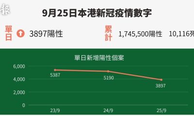 9月25日,本港單日新增3897宗新型冠狀病毒個案。...