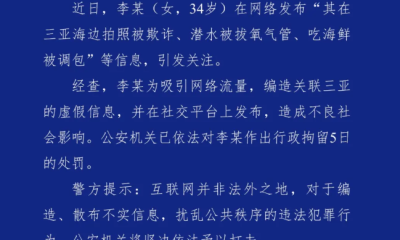 海南省三亞市公安局旅遊警務支隊發布警情通報稱,34歲...