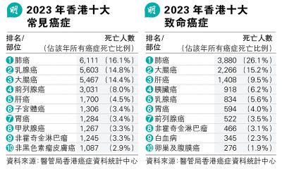 【明報專訊】醫管局香港癌症資料統計中心公布最新癌症統...