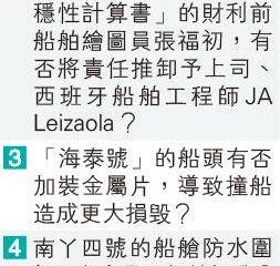 【明報專訊】上訴庭昨逐一分析南丫海難的關鍵議題(見表...