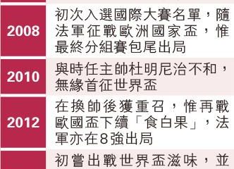 【明報專訊】今屆世界盃前夕因傷退隊的法國隊前鋒賓施馬...