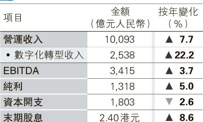 【明報專訊】中國移動(0941)公布去年全年業績,收...