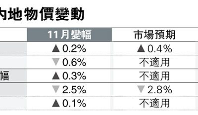 【明報專訊】國家統計局公布11月內地物價數據,居民消...