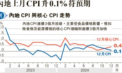 【明報專訊】國家統計局公布,內地12月居民消費價格(...