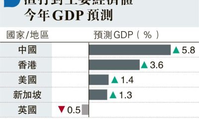 【明報專訊】評級機構惠譽發表報告,將中國今年經濟增長...