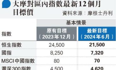 【明報專訊】經高盛上周調低MSCI中國,以及香港指數...