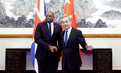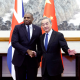 中國外交部長王毅10月18日在北京同英國外相林德偉舉...