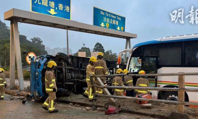 【明報專訊】一輛密斗貨車昨清晨在長沙灣龍翔道失事翻側...
