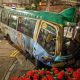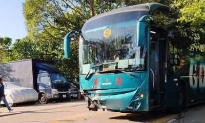【明報專訊】往來山頂至香港站的專線小巴前晚在中區花園...