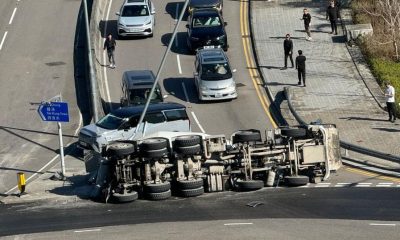 上午10時,一輛田螺車駛經西貢公路南邊圍迴旋處時失事...