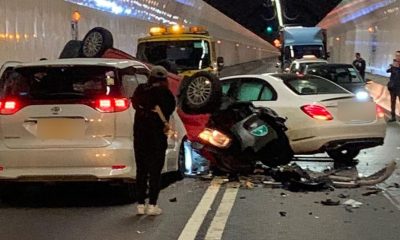 凌晨4時許,城門隧道實施單管雙程行車期間發生3車相撞...