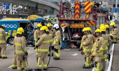 昨午(13日)一輛客貨車在西九龍公路撞向路中、處理另...