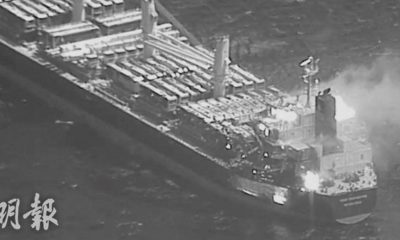 也門胡塞武裝周三(6日)在亞丁灣向一艘貨船發射導彈施...