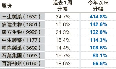 【明報專訊】中資生物科技公司除獲中央政府支持外,本港...