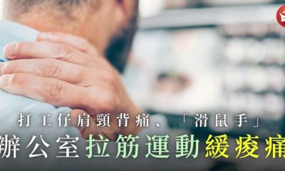 打工仔長時間坐在辦公室工作,導致肩頸肌肉繃緊。醫管局...