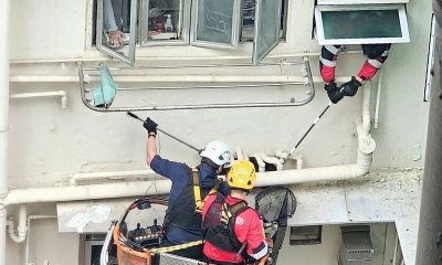 【明報專訊】油麻地「八文樓」一隻黑貓昨疑由單位跳出窗...