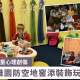 牆上的彩色貓壁畫、懸掛的彩旗、桌上堆着七彩積木、地上...