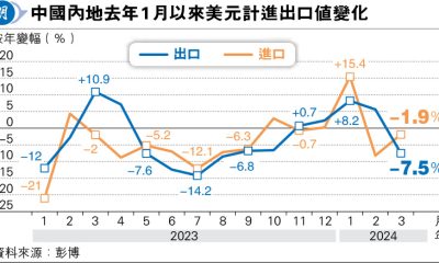 【明報專訊】中國海關總署公布3月進出口數據,以美元計...
