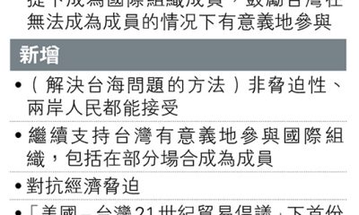 【明報專訊】美國國務院當地時間13日更新官網的美台關...
