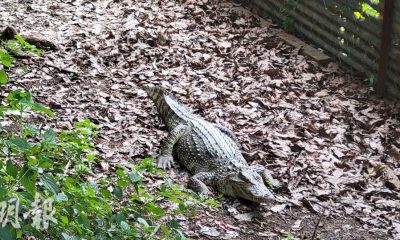 【明報專訊】一條約兩米長鱷魚昨日被發現伏在八鄉錦上路...