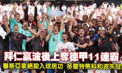 拜仁慕尼黑今晚(27日)戲劇性達成德甲11連霸。「巴...