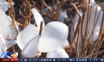 山西近日持續受低溫影響,聞喜縣一塊藥材地出現「冰蝴蝶...