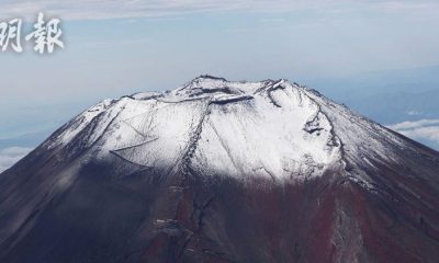 共同社周三(6日)報道,富士山山頂靜岡縣一側終見積雪...