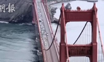 美國三藩市周一(15日)有一批示威者堵塞金門橋,聲援...