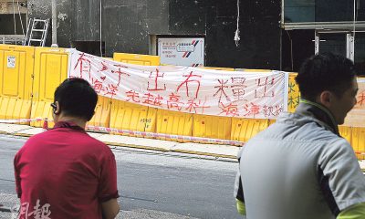 【明報專訊】油塘私人樓盤地盤昨早有工人堵路追薪,高超...