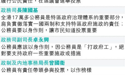 【明報專訊】繼多名政府官員呼籲公務員在今屆區議會選舉...